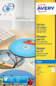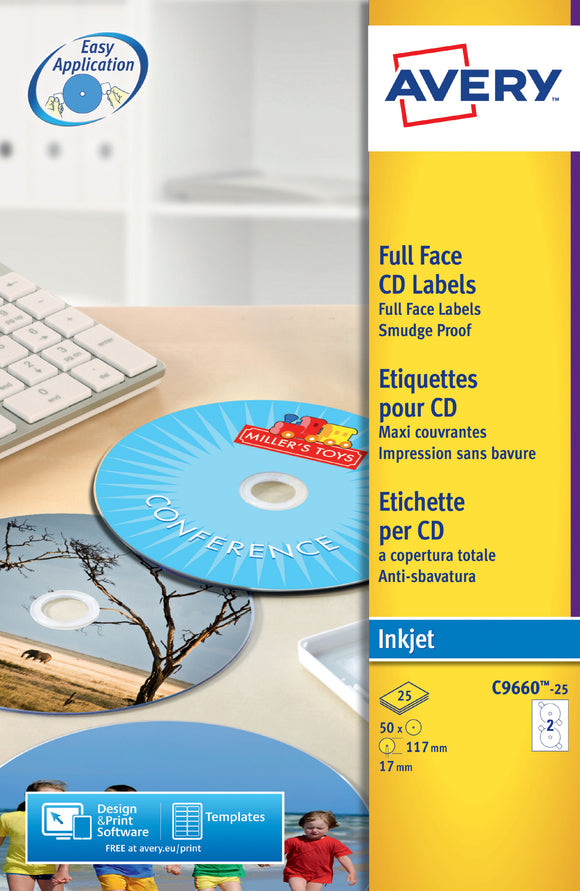Avery FullFace CD Label Glossy 117mm DIA C9660-25 (50Labels)