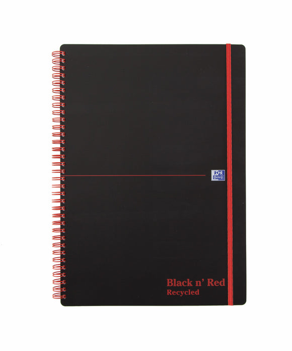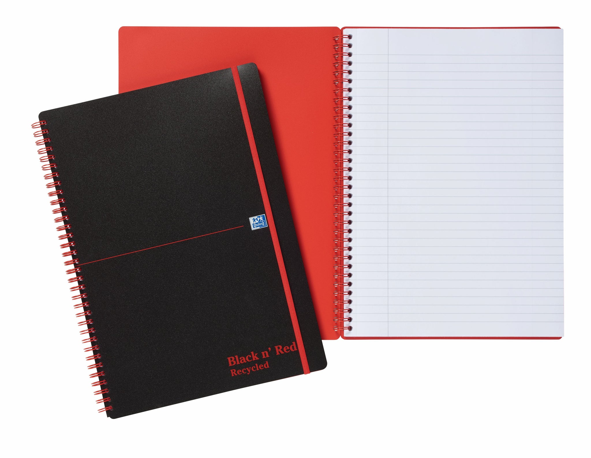 Black N Red Notebook A4 Recycled Wirebound 140 Page PP PK5