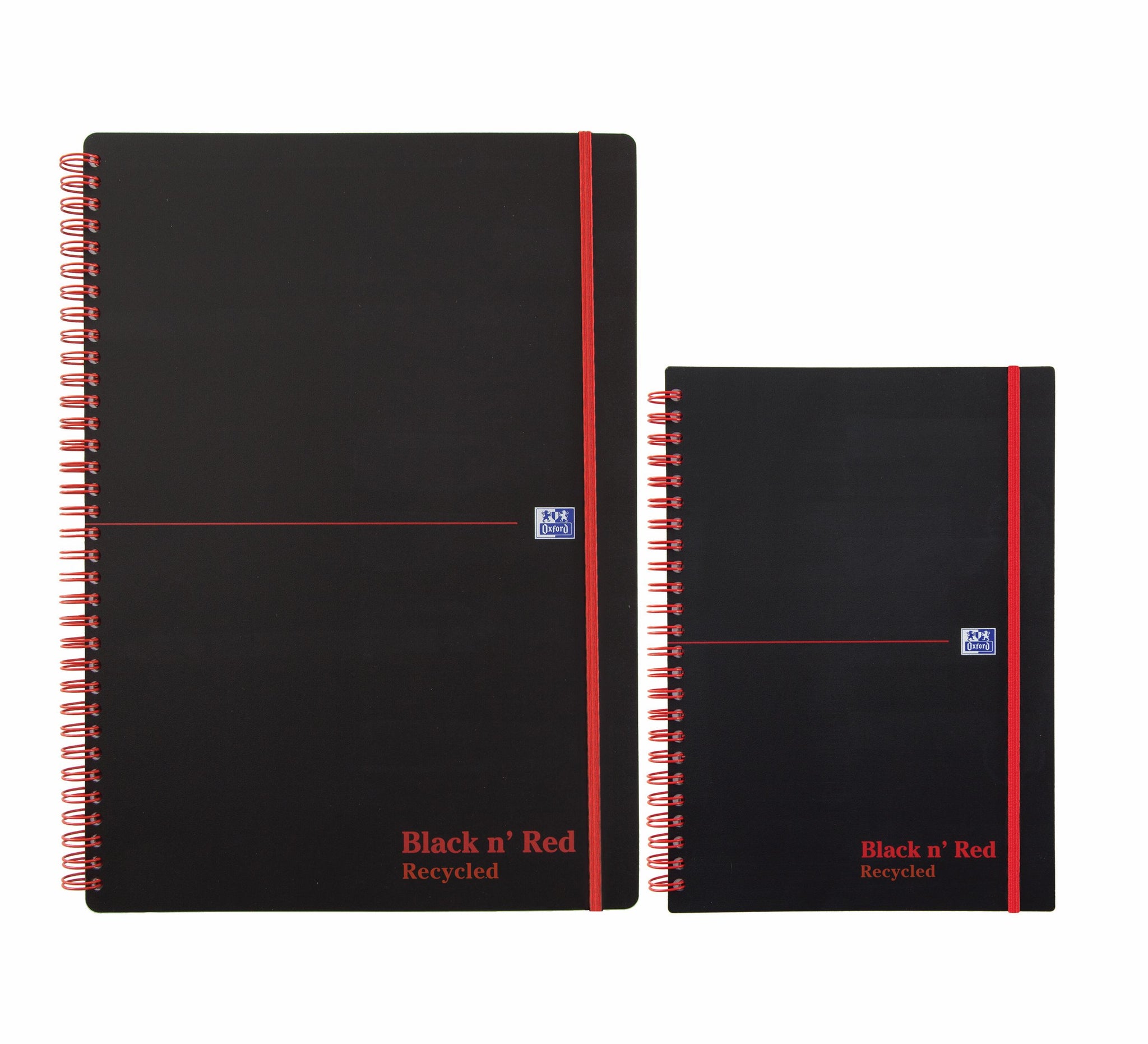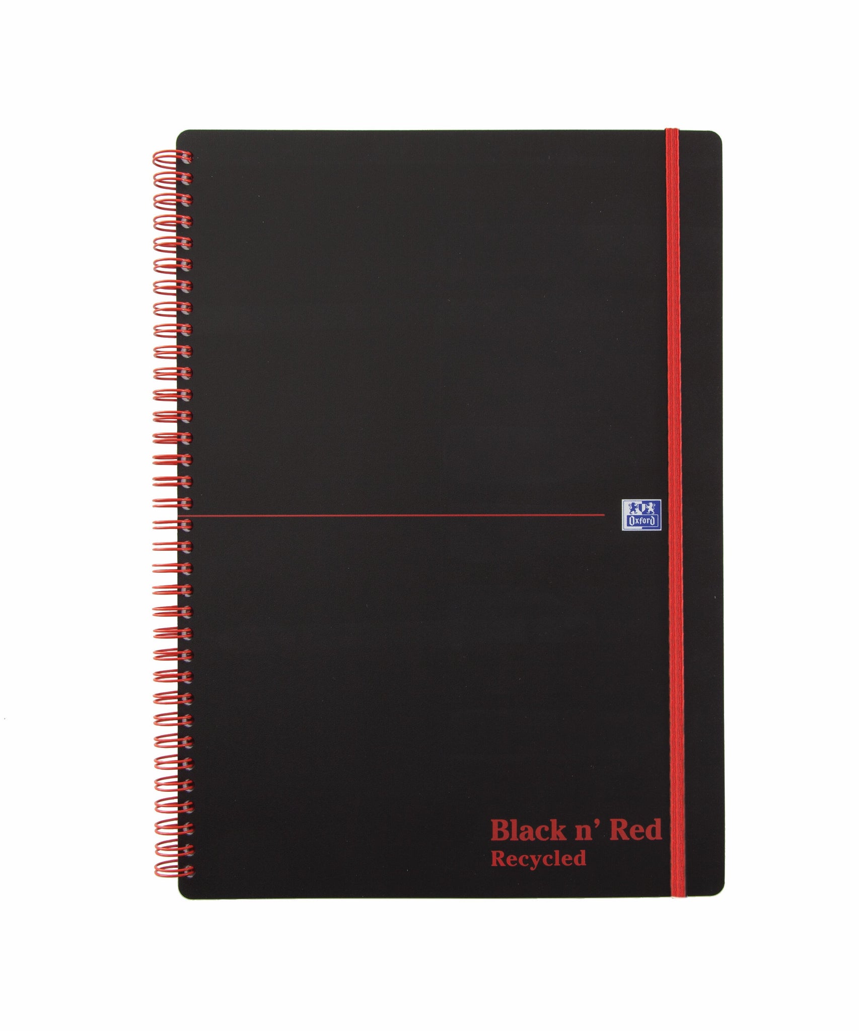 This Oxford Black n' Red notebook is built using pages made from high quality recycled paper twin wire bound for durability within a hard wearing and stylish polypropylene cover, includes elasticated closure.