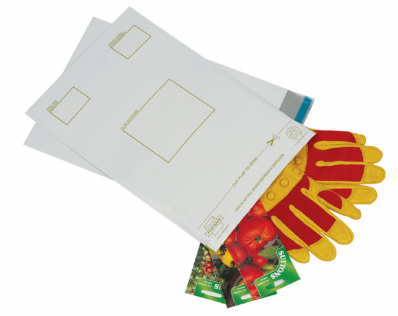 - White opaque envelopes made from 75 micron biodegradable polythene.