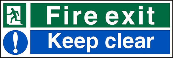 Fire Exit Keep Clear Sign. Clearly identify your emergency escape routes. SAV. Size: 450x150mm.